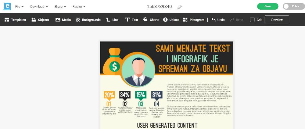 Druga opcija je Easel, online alat koji vam olakšava kreiranje infografika i na ovaj način svako ihmože napraviti.
